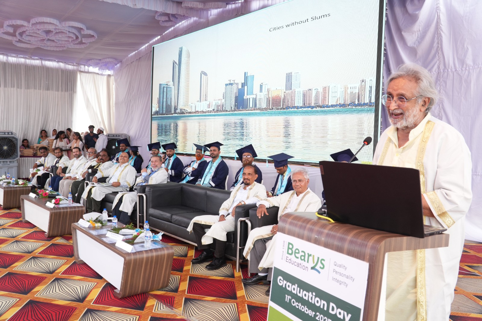 Architect Kirtee Shah, President of INHAF, Founder Director of ASAG, and Chairman of BBK Collaborative, Ahmedabad, delivered a thought-provoking address on the theme ‘Cities without Slums.’ He said that “slums are signs of inequality” and called for an inclusive approach to urban development. Commending the vision of Bearys Group, he remarked, “Syed Mohamed Beary is a visionary. Humans have become destroyers of environment and wildlife; we need to introspect and change ourselves from destroyers to creators. The Bearys Group has a campus that can create such creators and creativity among young graduates.”
