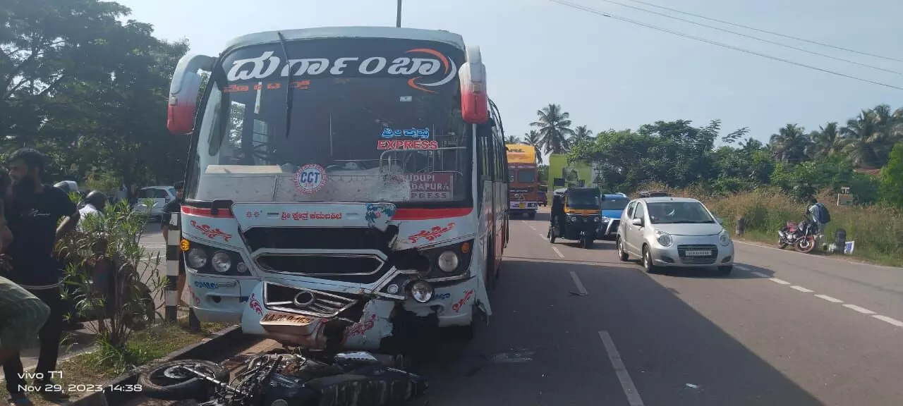 Udupi: In a tragic incident, a rider died after a bus collided with his bike near Belurujedu cross on NH 66, on Wednesday afternoon.