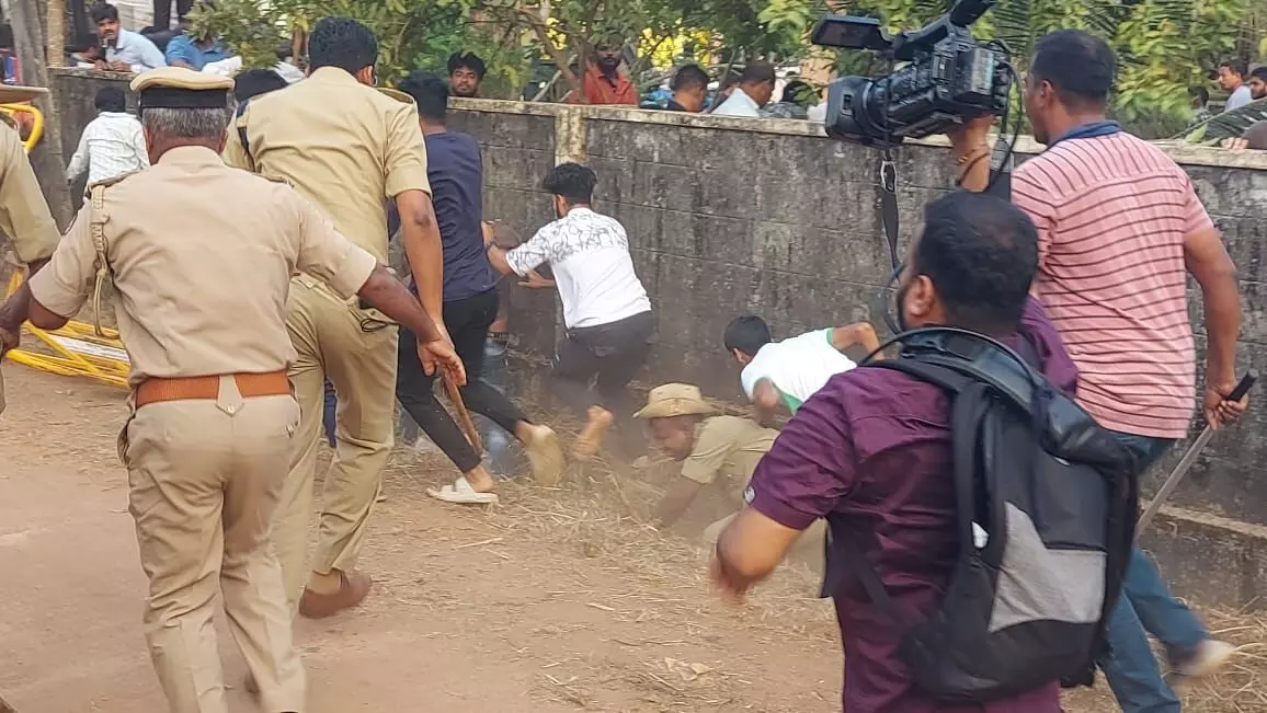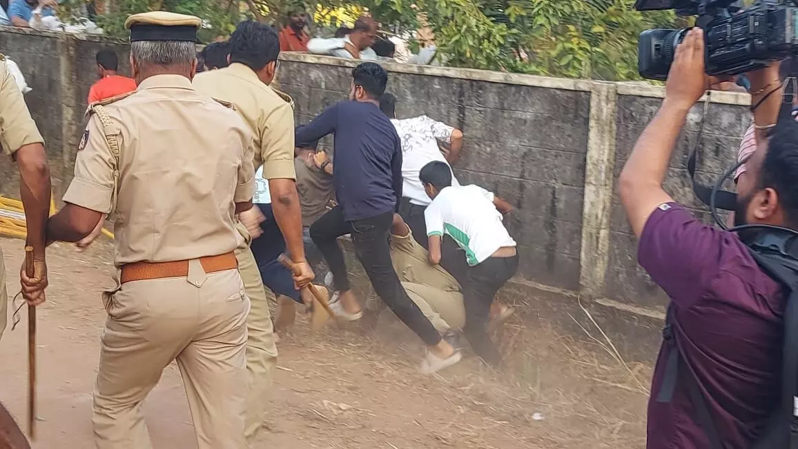 Udupi: Local police on Thursday Lathi-charged people who tried to assault the Nejaru Murder Case accused outside the crime scene where he was brought for investigation in the afternoon.