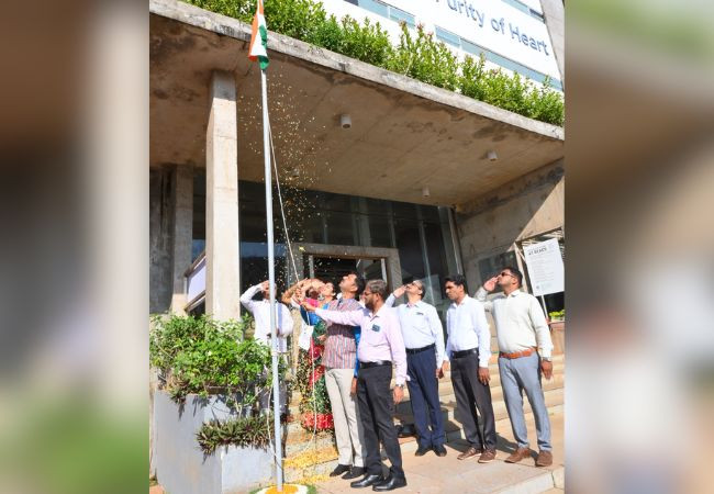 The National Flag was unfurled by the Chief Guest, Dr. Sanjith S. Anchan, Assistant Professor, Department of Civil Engineering, The National Institute of Engineering, Mysore. Addressing the gathering, he spoke about the values enshrined in the Constitution of India and highlighted the responsibility of the youth in nation building.