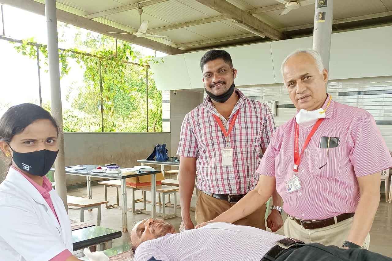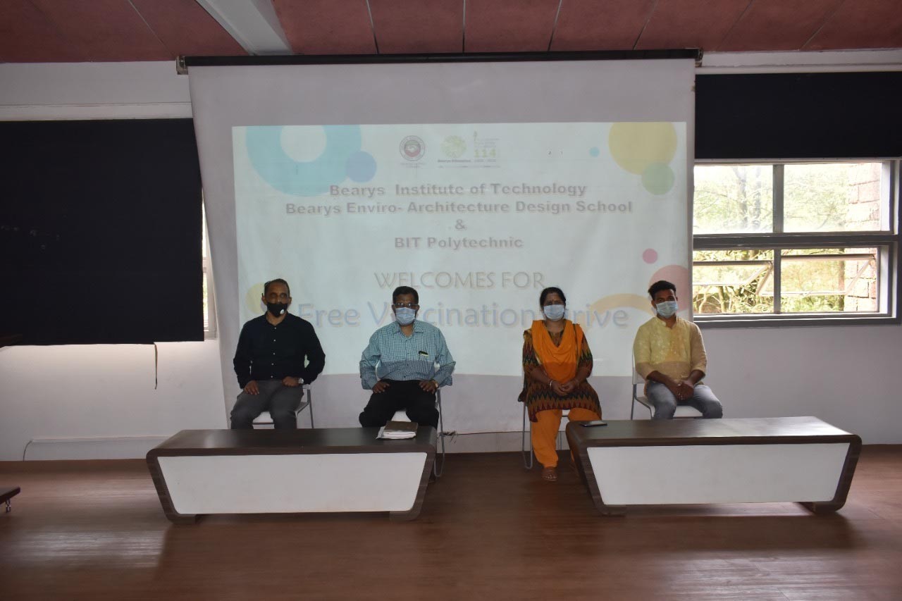 Principal of BIT, Dr. Manjur Basha delivered the welcome speech. Followed by Dr. Aziz Mustafa spoke and gave the importance of Vaccination. The chief guest of the event Dr. JN Bhatt, Indian red cross society of Mangalore launched the covid-19 vaccine campaign and Blood donation camp. The other dignitaries on the dais were Dr. Sunitha, PHC Boliyar, Mr. Praveen kumar, Dist coordinator, IRC, Mangalore. Mr. Siddique, Member SDRT, IRC, Mr. Mohammad Shaheer, Member IRC. The coordinator for this event were, Prof. Zaheer Ahmed, HOD, Civil Dept, BIT and Mr. Rafeeq of BIT.