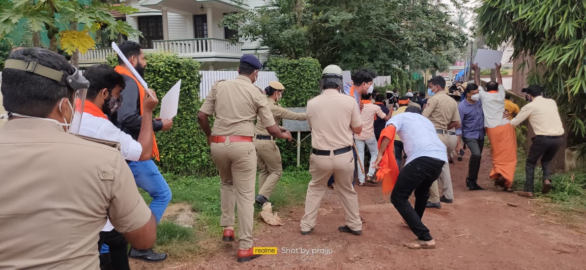 Mangaluru: The Vishwa Hindu Parishad and Bajrang Dal attempted to lay siege on the Maastikatte residence of Ullal businessman B. M. Basha on Wednesday morning.