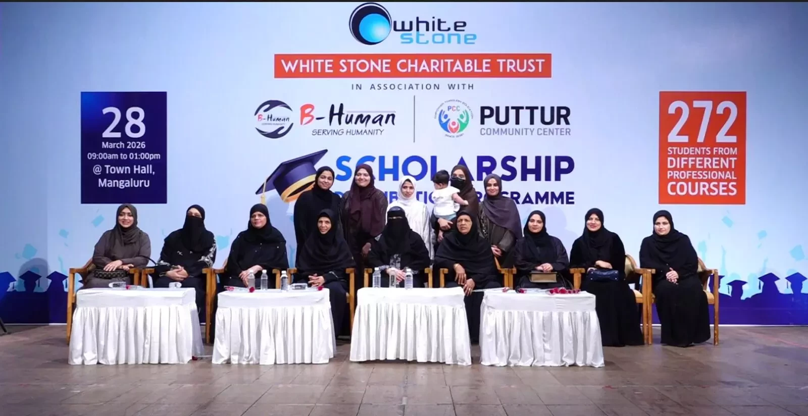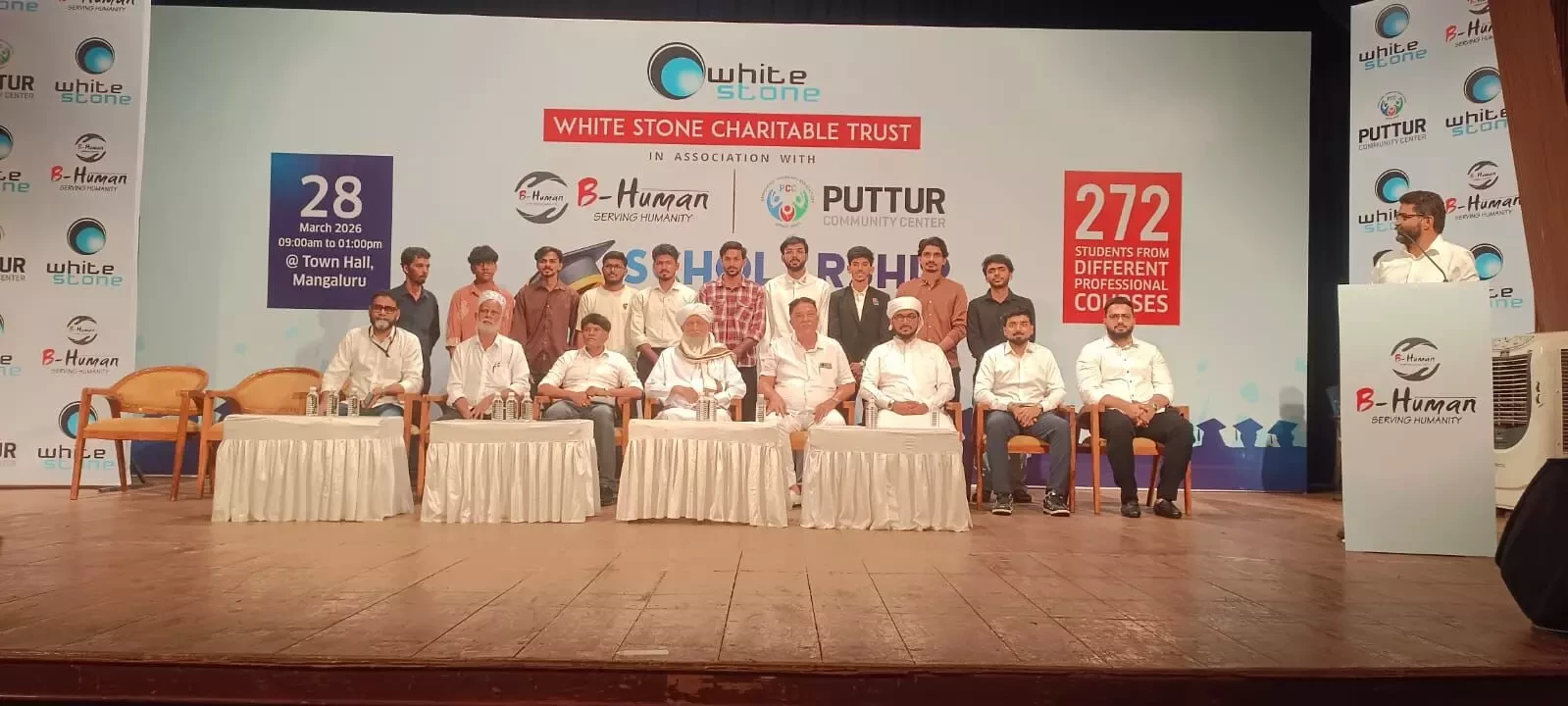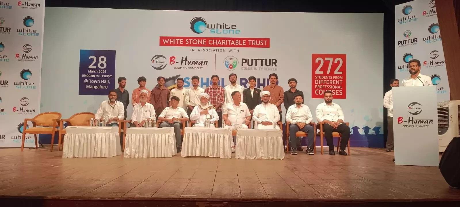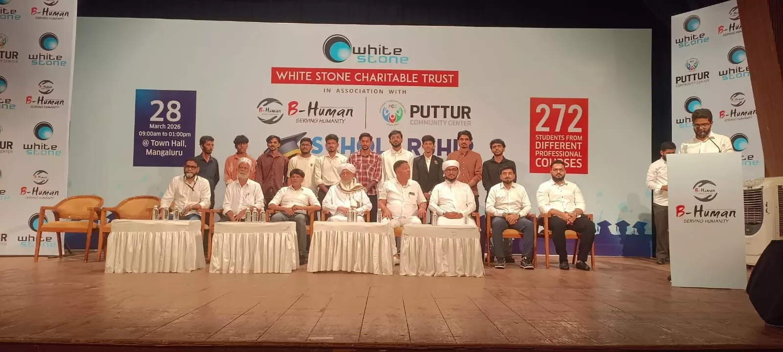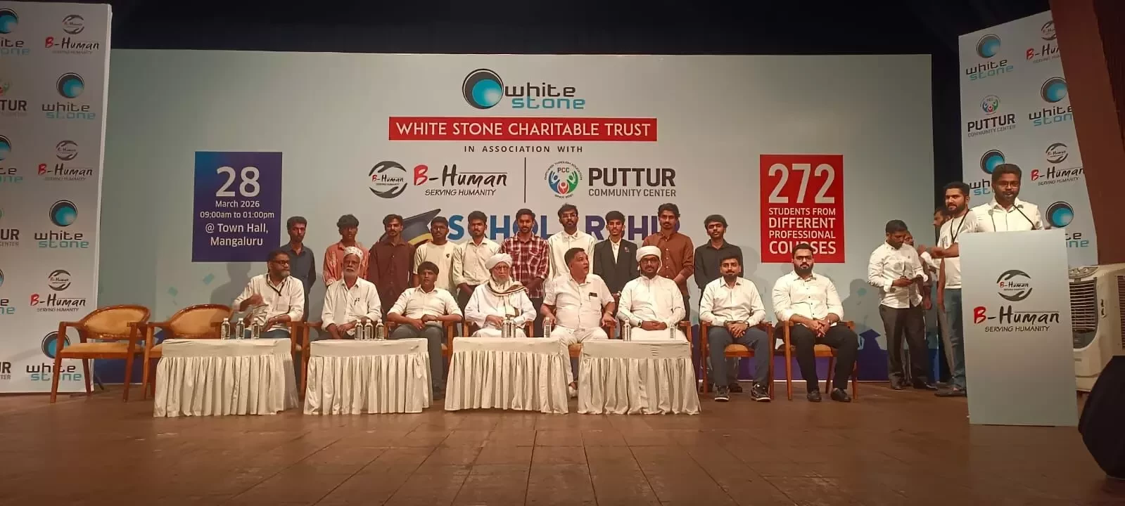 During the event, Whitestone Group CEO and Team B-Human President B.M. Shareef Bolar distributed the scholarships to the beneficiaries. Addressing the gathering, he said that as part of the trust’s plan for community development, scholarships have been provided to 272 students this year, expressing happiness over being able to extend such substantial support.
