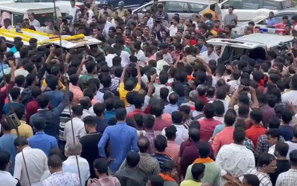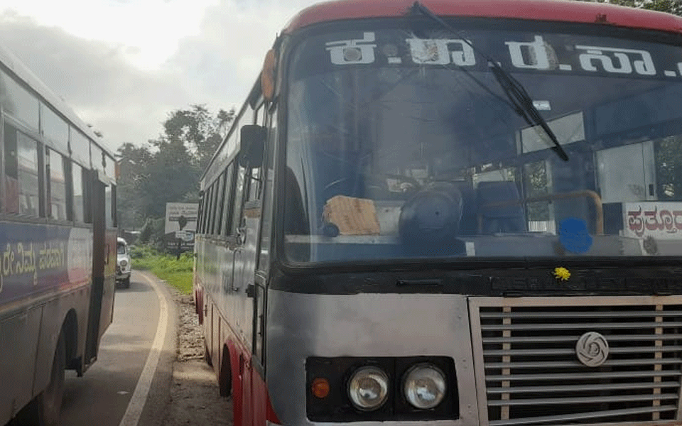 In the background of BJP Yuva Morcha leader Praveen Nettaru’s murder at Bellare on Tuesday night, several shops and businesses in Sulya, Puttur and Kadaba Taluks shut shop at the behest of Hindutva organizations. Amid this, stones were pelted on a government bus in Puttur’s Boluvaru on Wednesday morning.