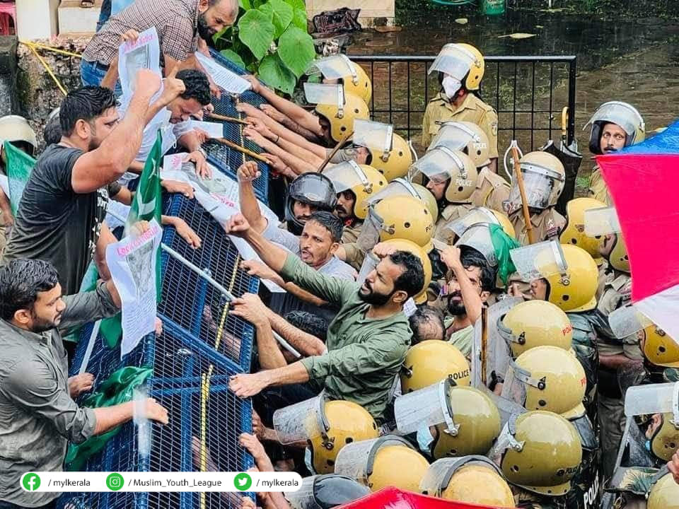 Kasargod: Activists of the Muslim Youth League on Saturday staged a protest outside the office of the District Police Superintendent demanding the resignation of Kerala CM Pinarayi Vijayan over the gold smuggling case.