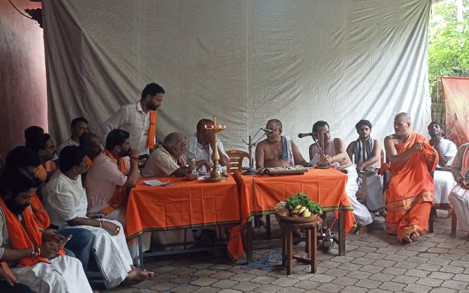 Mangaluru: Amidst the controversy that erupted over the renovation of the Jummah Masjid in Malali in Dakshina Kannada district, Hindutva organization on Wednesday performed ‘Betel Leaf Astrology’ at the mosque sight to ascertain the mosque was a temple before being turned into a mosque.