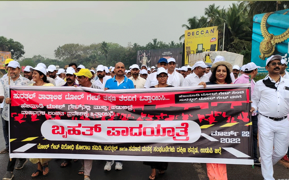 On Tuesday, a march dubbed as ‘Surathkal Toll Gate Chalo’ was initiated from Hejamady demanding the removal of the temporary toll gate and seeking toll exemptions for the locals at the Hejamady toll.