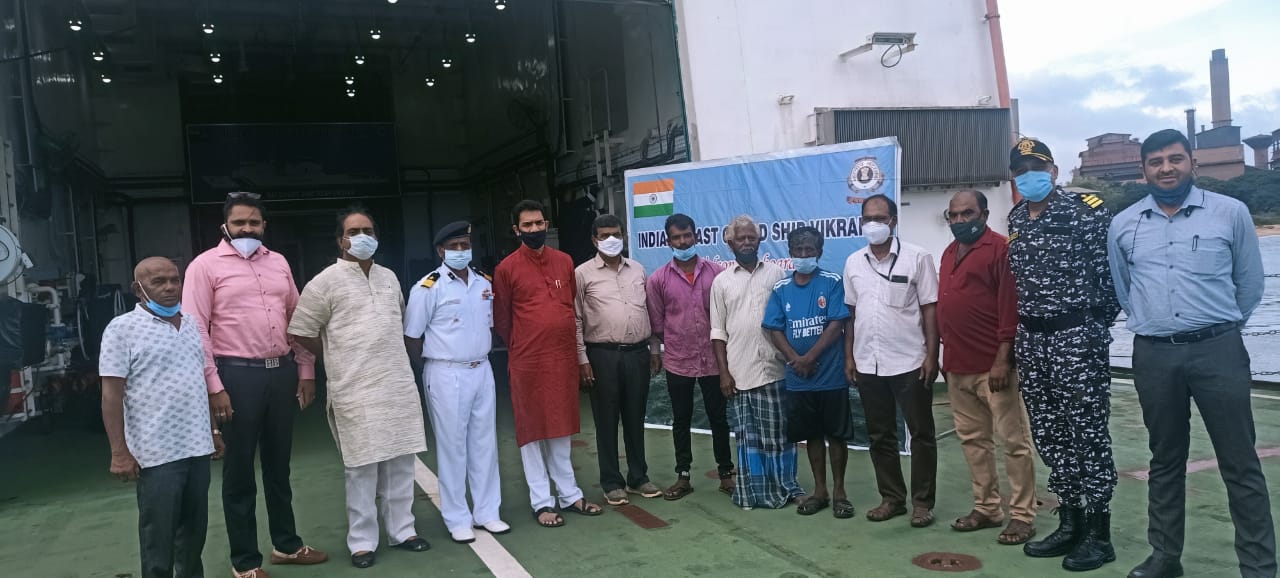 Mangaluru: The three stranded fishermen from Kerala, who were rescued by Indian Coast Guard vessel Vikram off Kannur coast on May 14, were handed over to Kerala government authorities at the New Mangalore port here on Wednesday.