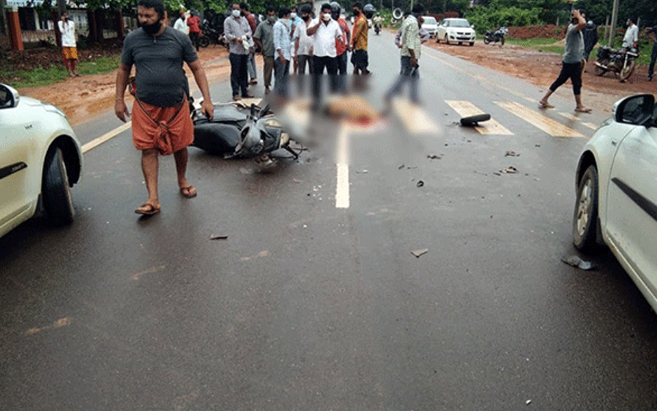 In an accident that occurred on the overpass at Thokkottu on Thursday, a car crashed into a scooter being ridden by a woman, who was riding with her mother. As a result, the mother sustained grievous injuries and died on the spot, it is learned.