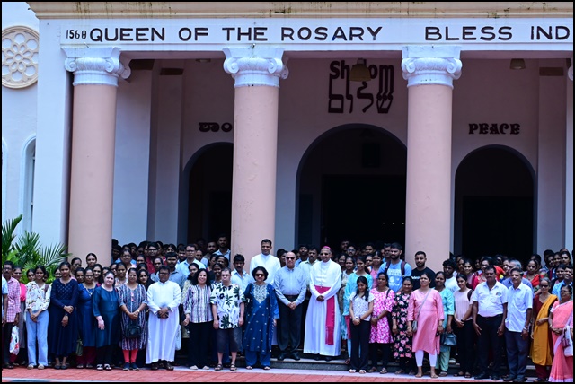 Bishop of Mangalore, Most Rev. Dr. Peter Paul Saldanha, on Sunday, reminded young students to remain grounded and grateful, urging them never to forget the sacrifices of their parents, the guidance of their teachers, and the support of their community. He was speaking at the symbolic distribution ceremony of the Educare interest-free loan scholarship, held at Rosario Cathedral in Mangalore.