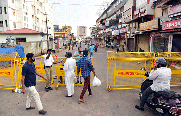Mangaluru: Police officials in Mangaluru City limits were seen forcing the fruit vendors, pushcart vendors, and grocery stores to close down their shops at 10:00 am. This, despite the state government in an order issued on Saturday night, relaxed the hours of business for grocery stores and pushcart vendors.