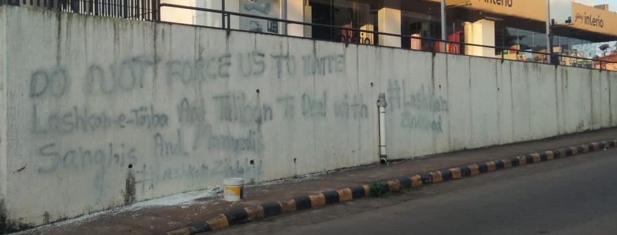 Mangaluru: In an incident reported from the Bejai area in the city, miscreants have reportedly written “Lashkar Zindabad” on the wall of a flyover here.
