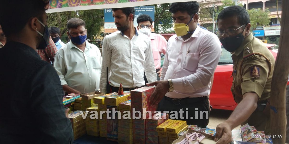 Mangalore: Personnel of Environmental Pollution Control Board, Department of Health and Revenue, and local police jointly raided several firecrackers shop in the city on Monday under the instructions of Dakshina Kannada Deputy Commissioner.