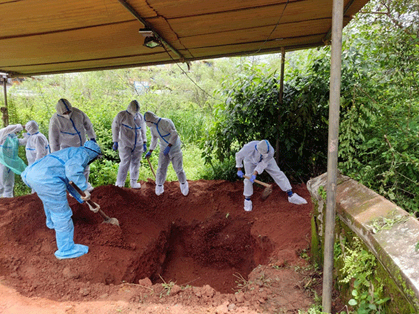 Udupi: The funeral of a patient hailing from Davanagere who died of Coronavirus in Udupi town was conducted by the members of the Popular Front of India on Sunday here.