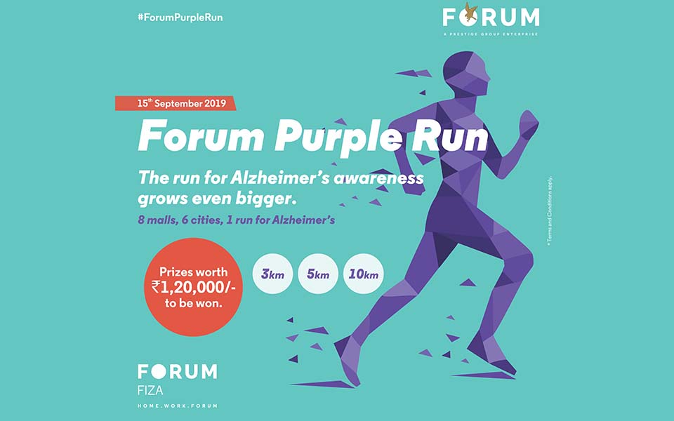 Mangaluru: Forum Fiza Mall is set to organise the third edition of ‘Forum Purple Run’ on September 15 to raise awareness about Alzheimer across eight Forum Malls in six cities across India. The run will be organised on Sunday at Mangalore, Bangalore, Hyderabad, Mysore, Udaipur and Chennai simultaneously for a single cause.