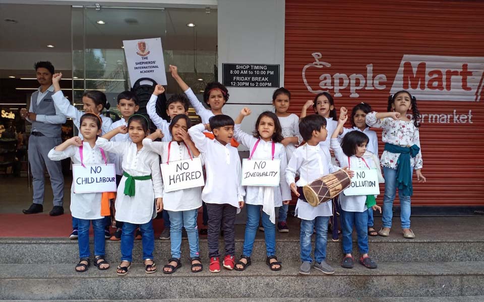 Mangaluru: The 1st graders of The Shepherds' International Academy marked the end of the month of August by enacting a street play on the streets of Attavar, appealing for unity and to eliminate the hatred that has spread across the country.