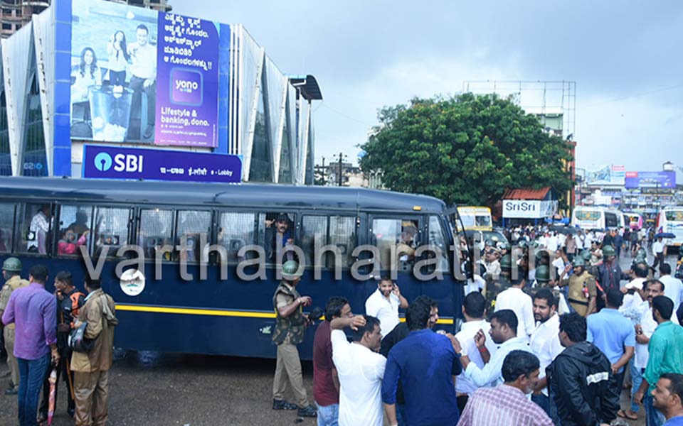 Mangaluru: Protesting against the arrest of Senior Congress leader and former Karnataka Minister DK Shivakumar, his supporters pelted stones at buses in two different incidents in Mangaluru on Wednesday morning.