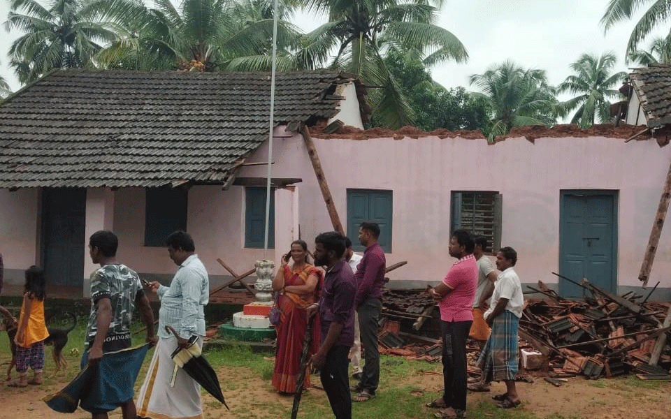 Byndoor: Due to heavy rain that has been lashing the region over the past few days a roof of Government Primary School in Kegaarl village in Byndoor on Sunday.