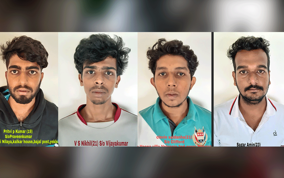 Mangaluru: Mangaluru Police on Saturday arrested four people for allegedly smuggling drugs in the city and seized 1.2kg Ganja from the accused in a raid led by Police Commissioner Sandeep Patil.