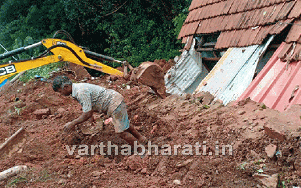 Mangaluru: Due to excessive rain in the city since Tuesday night, a land sliding incident was reported from Akashbhavan locality in the city on Wednesday morning.