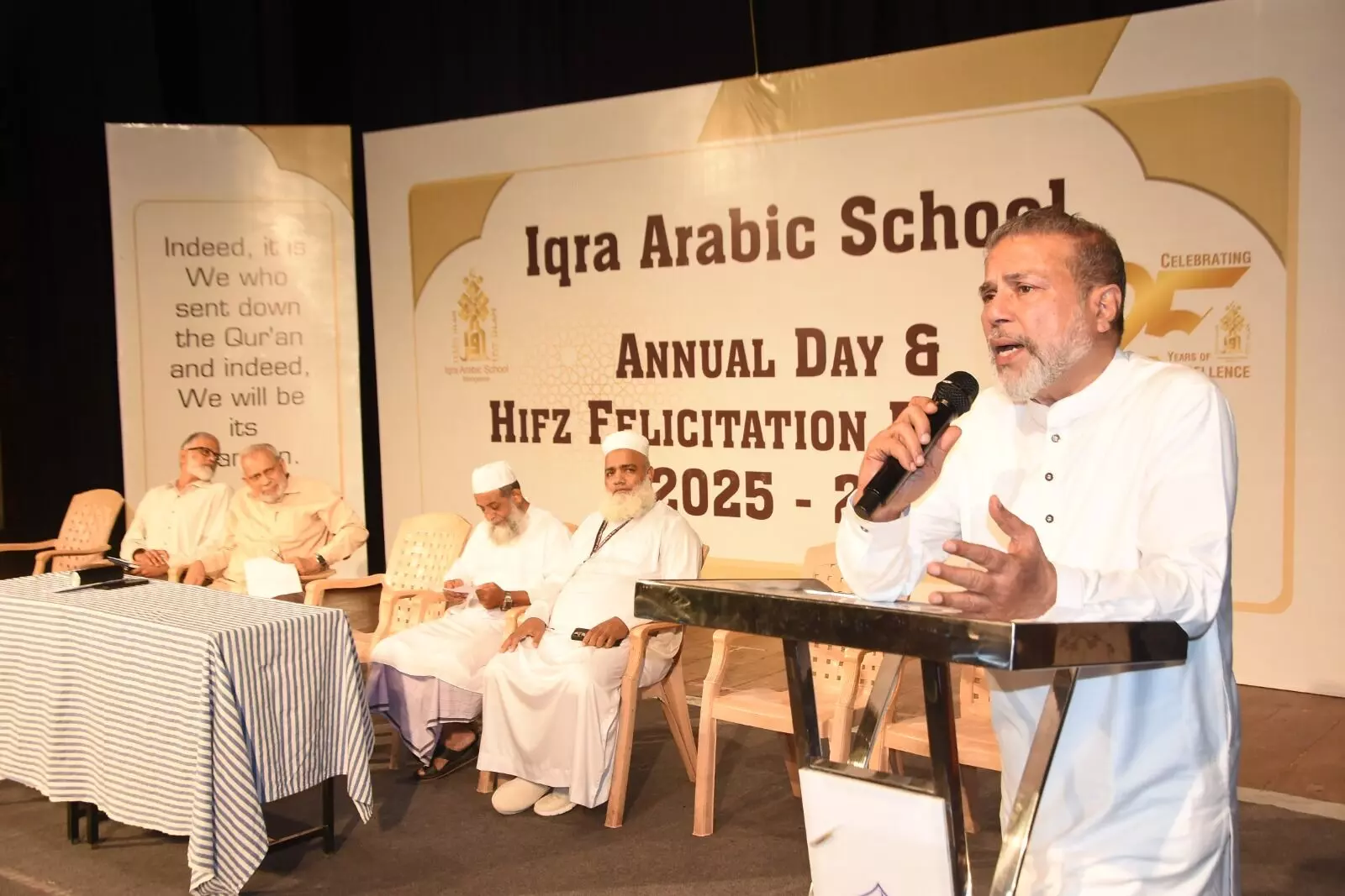 Chief guest Moulana Maqbool Kobatte, Principal, Jamia Islamia Bhatkal, congratulated the students and their parents for completing the memorisation of the Qur’an. He said these Huffaz are part of Allah’s promise of preserving the Qur’an until the Day of Judgement. He described the Qur’an as a guide for life and said while recitation is important, it is equally necessary to practise its teachings. He also noted that in the race for worldly success, people are moving away from values such as humanity, brotherhood and unity.
