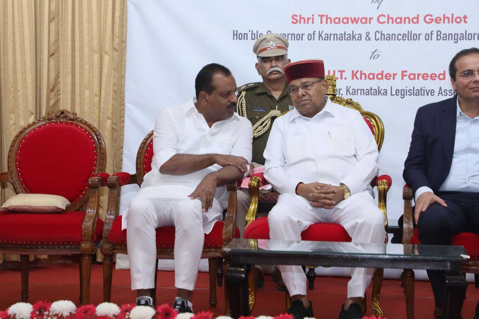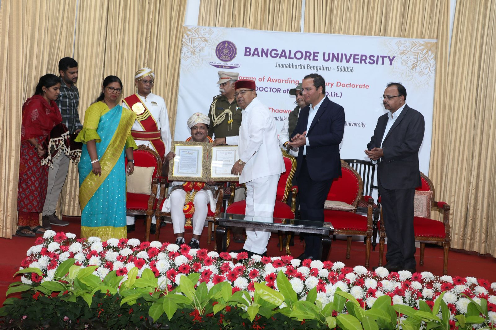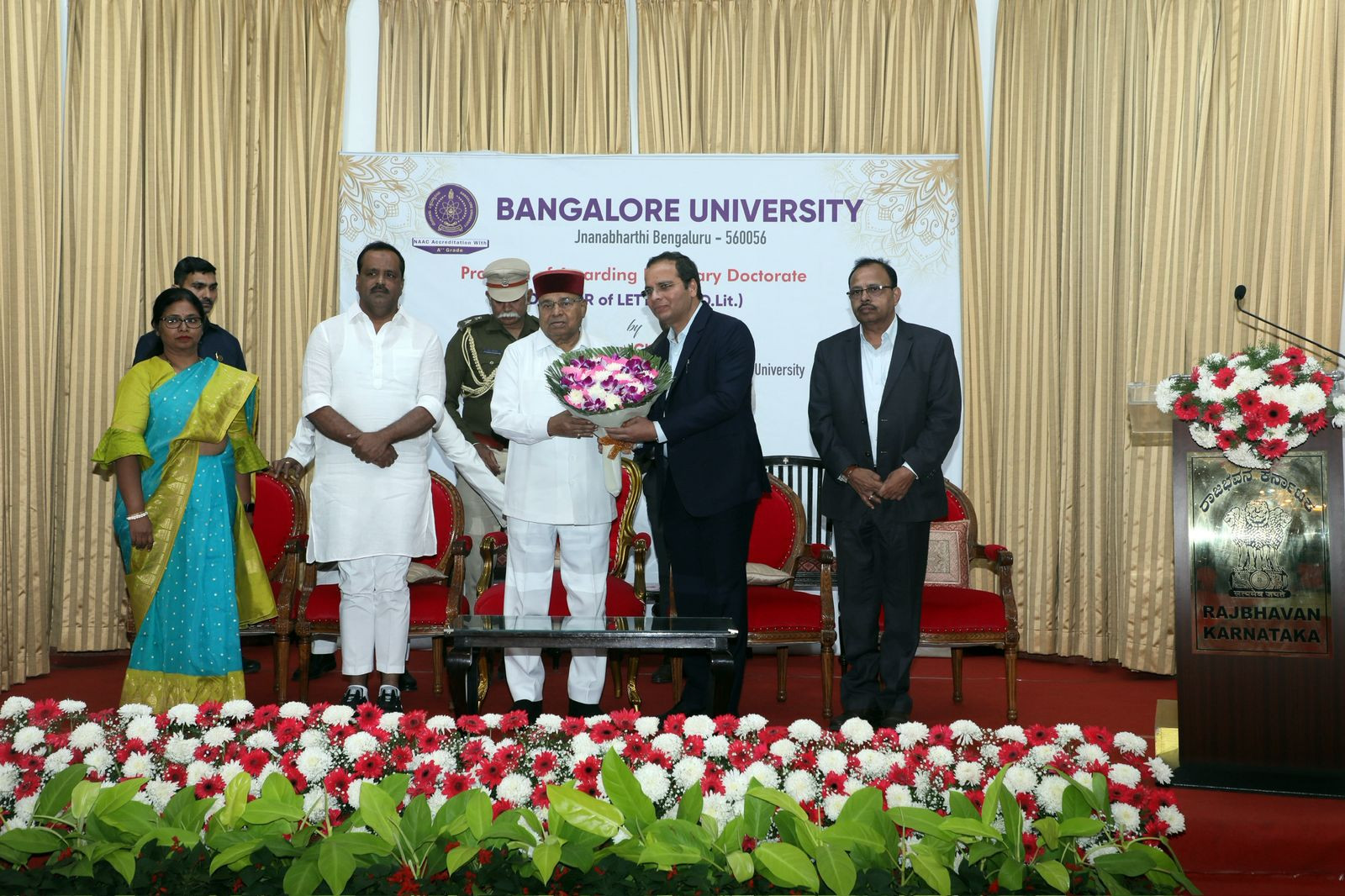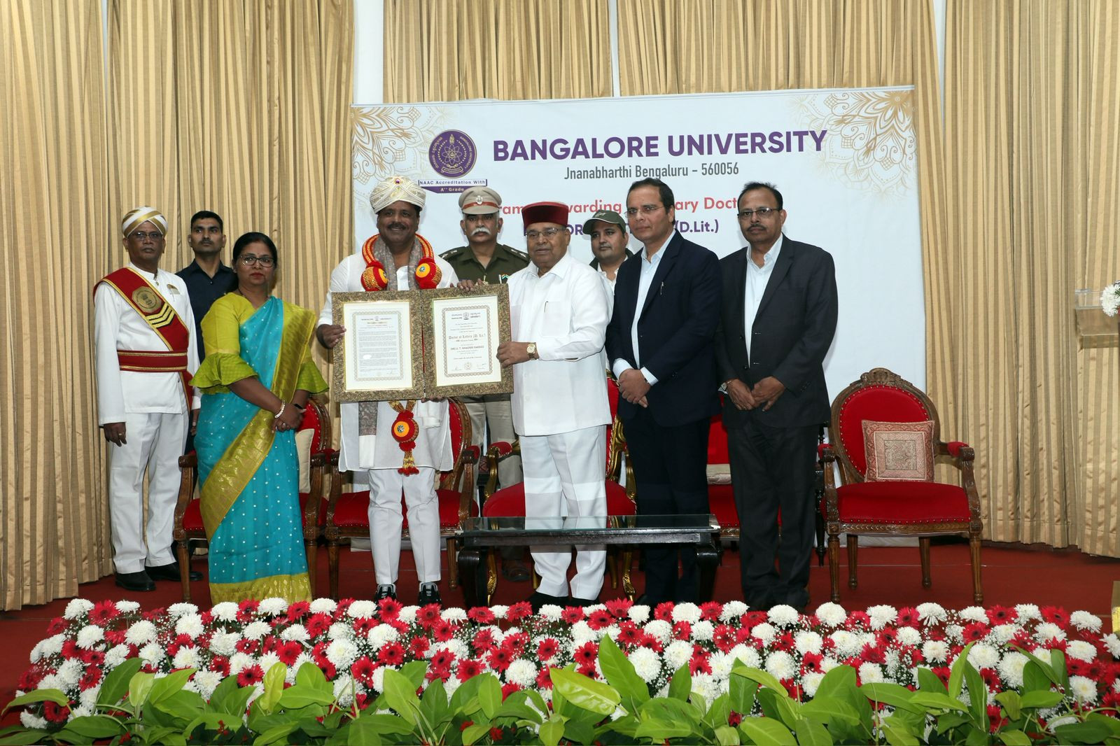 Bengaluru: Bangalore University awarded an honorary doctorate to Karnataka Legislative Assembly Speaker U.T. Khader, which was presented by Governor Thawar Chand Gehlot. The ceremony took place at the Banquet Hall of Raj Bhavan.