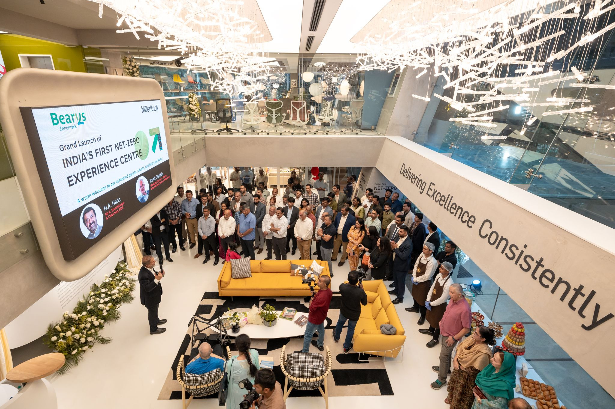 The launch event, attended by industry leaders, architects, project management consultants (PMCs), and clients, marked a significant milestone in India’s journey toward sustainable commercial spaces. The occasion was graced by Chief Guests N A Haris Nalapad, MLA of Shanthinagar and Chairman of the Bangalore Development Authority (BDA), Kartik Shethia, Managing Director for APMEA, International Contract, MillerKnoll, Syed Mohamed Beary, Founder & CMD, Bearys Group and Mazhar Beary Executive Director, Business Development & Retail, Bearys Group. Their presence highlighted the importance of sustainable infrastructure in shaping the future of urban development.