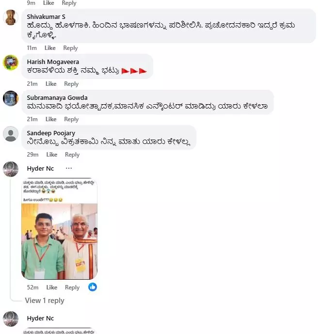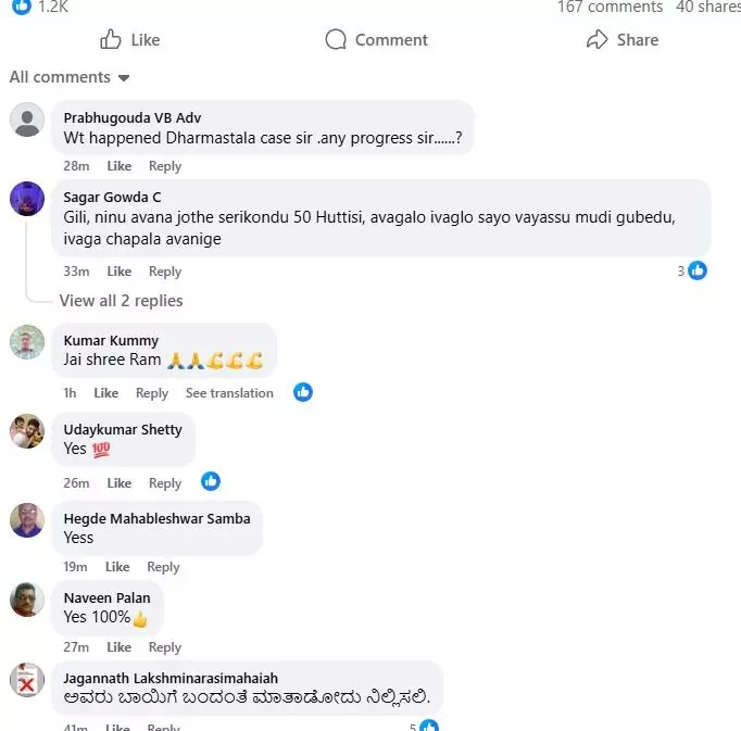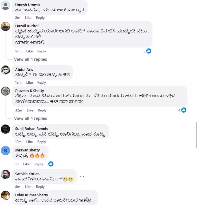 One user, Divyath K. Poojary, commented, “People like him don’t respect women. I once attended his speech and walked out halfway. We have nothing to learn from those who preach hatred in the name of religion.”