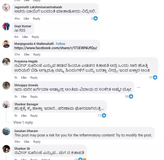 Another user, Prasanna Hegde, wrote provocatively, “If that is the intention of Naveen Soorinje, let it ignite once. Maybe then Hindus will wake up from their slumber.”