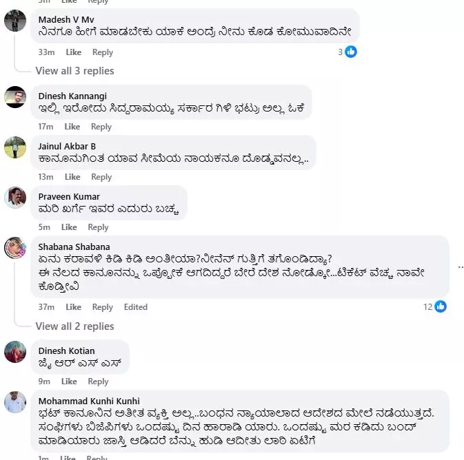 Others used the thread to issue further political and communal remarks. Shivappa Gowda referred to it as “Child Kharge’s advance farewell signal,” while Prakash K.T. suggested that if the government mishandled the case, sectors like transport, labour, healthcare, education, and hotels could teach the government a fitting lesson.