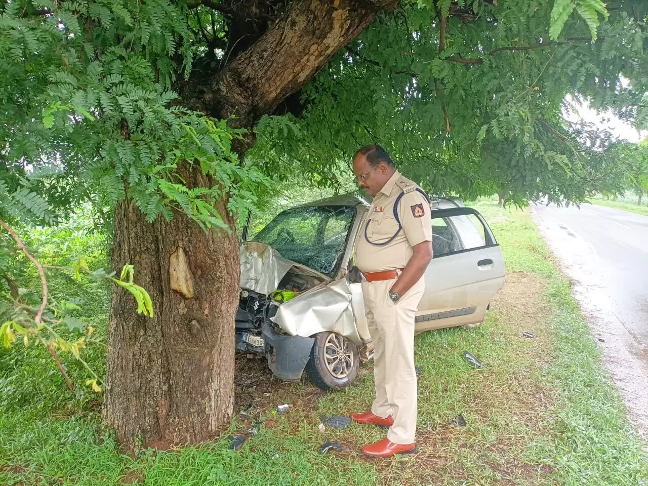 Vithal, who was driving the car, lost control over it near Ranebennur at around 6 pm and the car hit a big tamarind tree by the road, said the police, adding that Vithal and Jayanthi, who were seriously injured, died on the spot.