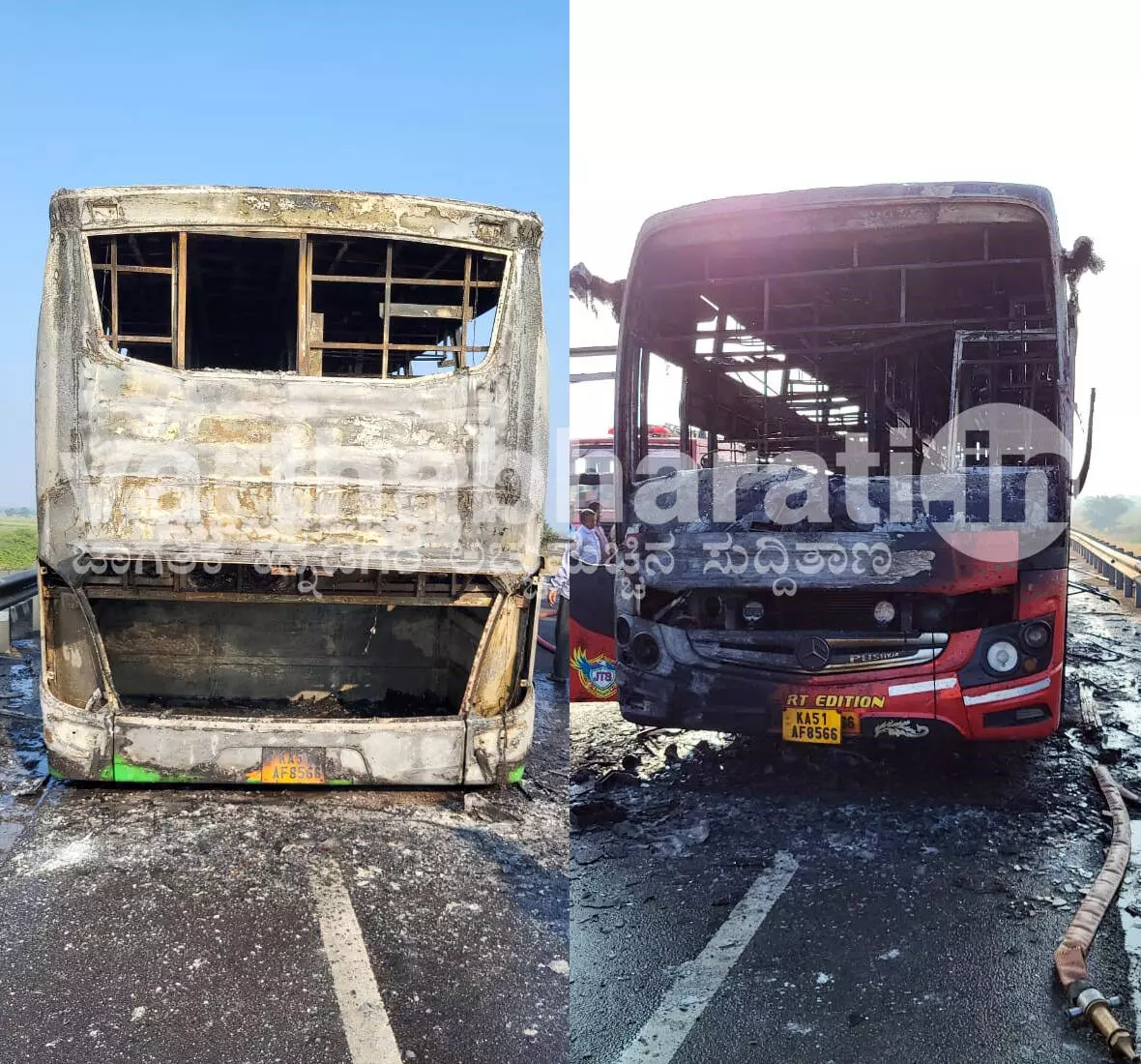 Vijayapura: Passengers had a narrow escape when the bus they were travelling in from Bengaluru to Vijayapura was gutted in fire moments after they deboarded it on Friday morning, police said.