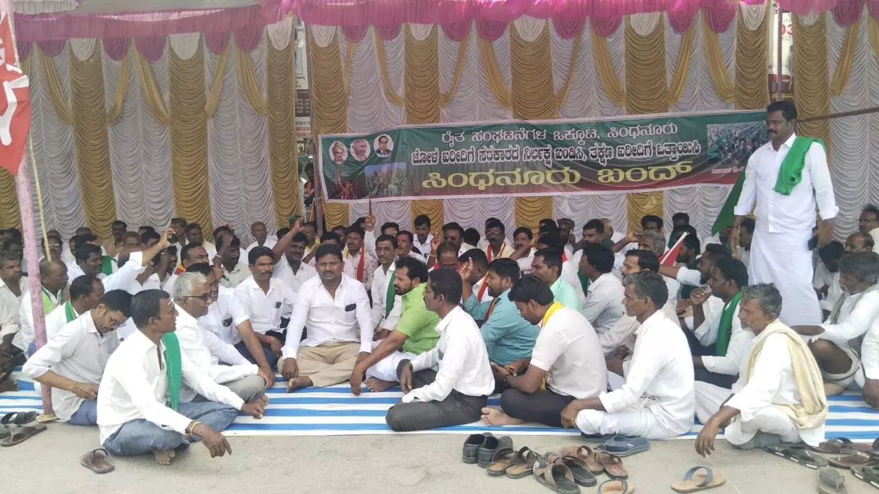 Members of CPIML (Liberation), Jamaat-e-Islami Hind Sindhanur taluk unit, pro-farmer and pro-Kannada organizations, business associations, taluk lawyers’ association and contractors’ associations were among the organizations that participated in the bandh on Monday, as thousands of protesters took out a rally shouting slogans against the state government.
