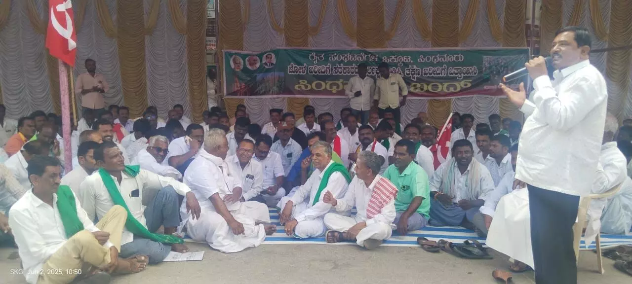 A similar protest had been staged by farmers last week, parking their truck outside the tahsildar’s office last week. The Lingasugur Assistant Commissioner Basavannappa Kalashetty and tahsildar in-charge Shruti had requested the farmers for four days’ time to respond to the demands, after which, the farmers withdrew their protest. As the government did not take any decision in the matter so far, the farmers expressed their anger with a protest rally on the streets of Sindhanur.