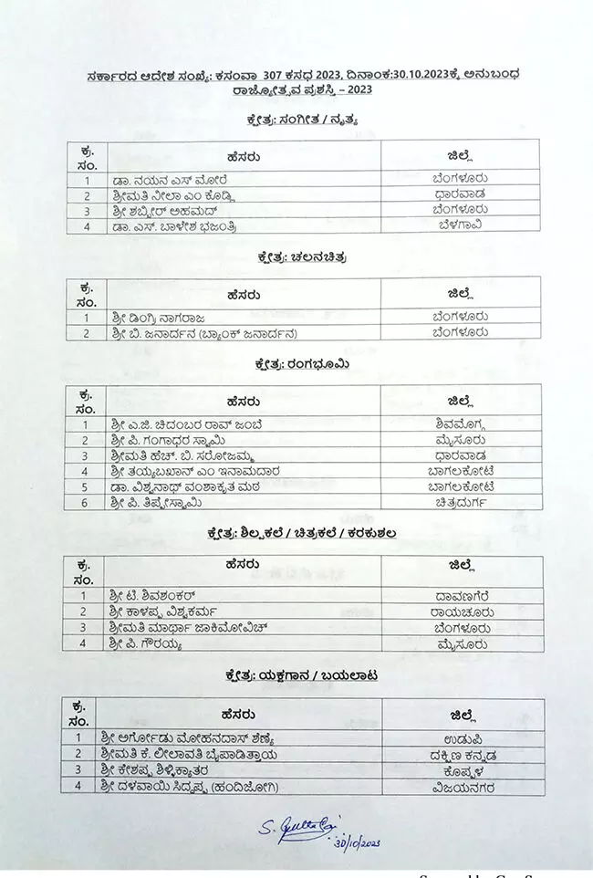 Bengaluru: The Karnataka state government has announced the prestigious Rajyotsava awards for the year 2023-24. The awards, a symbol of acknowledgment for outstanding contributions to various fields, have been conferred upon 68 individuals, including prominent writers, social workers and others.