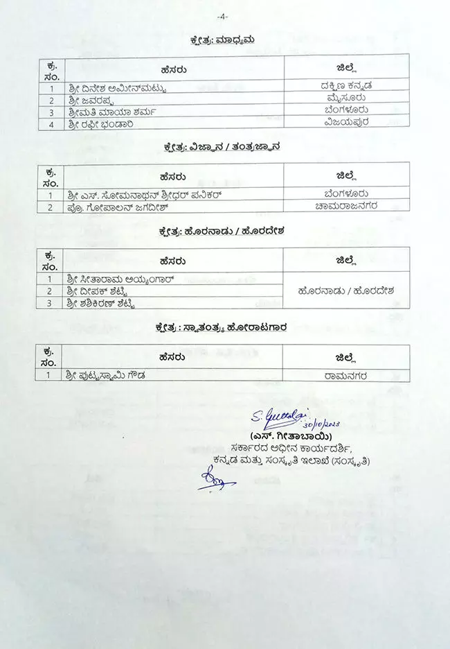 Additionally, the government has recognized 10 associations and organizations that have demonstrated exceptional service to the Kannada nation.