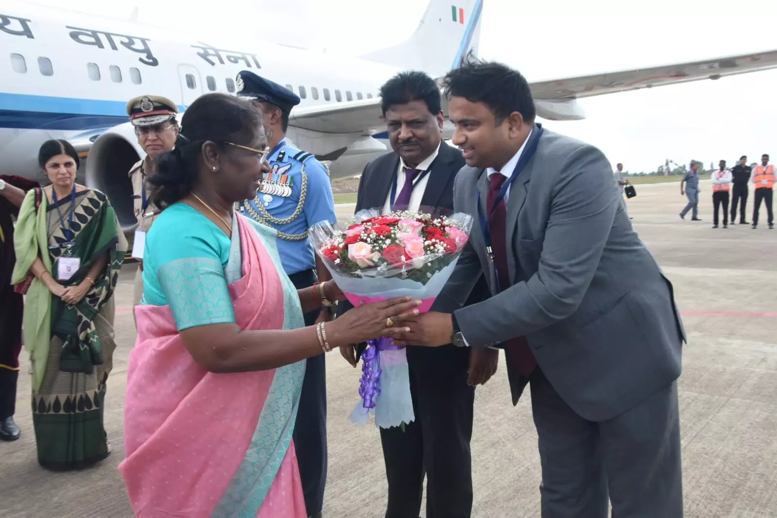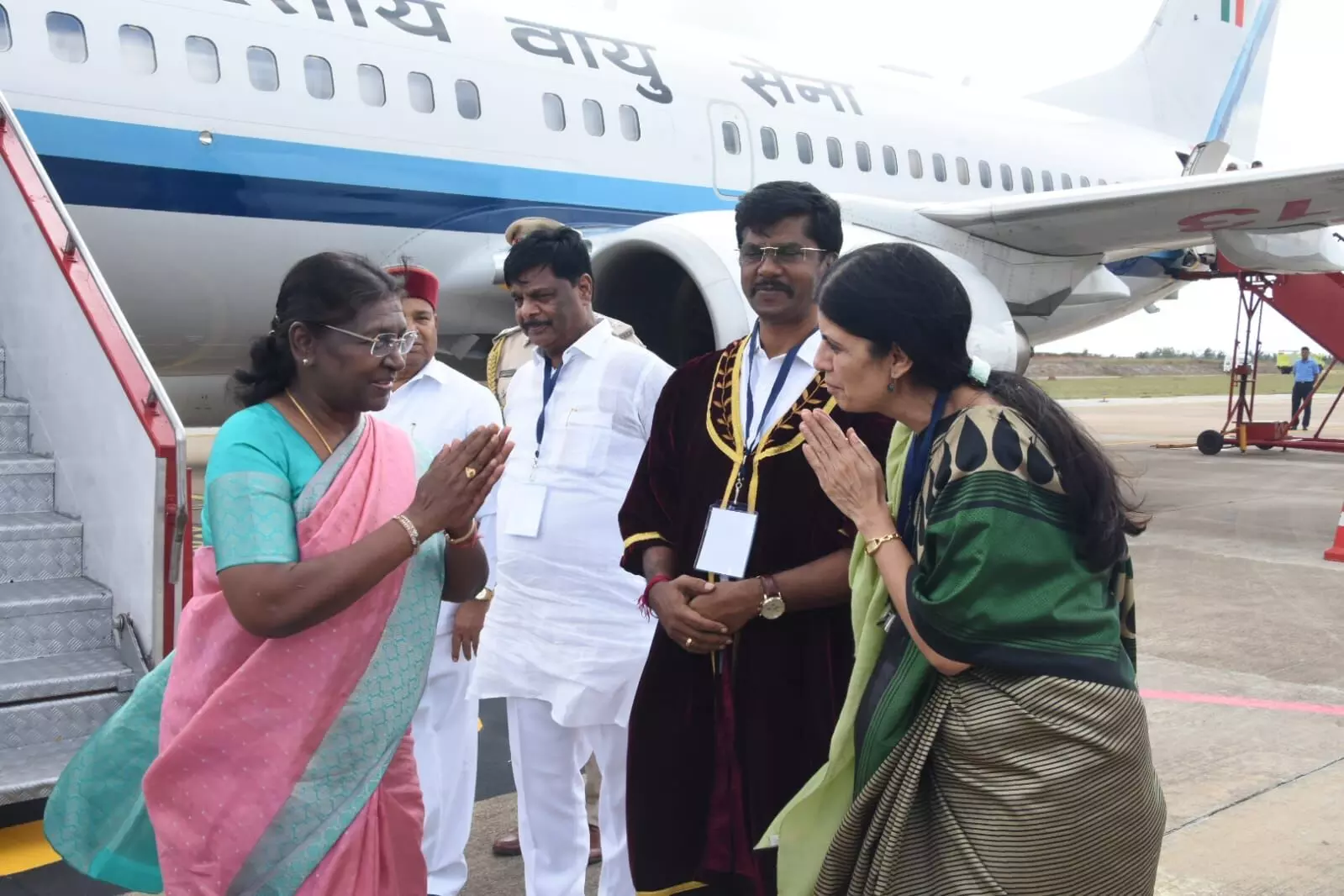 Mysore: President Draupadi Murmu arrived at Mandakalli Airport on Saturday afternoon to begin her visit to the Madumalai forest area in Tamil Nadu.