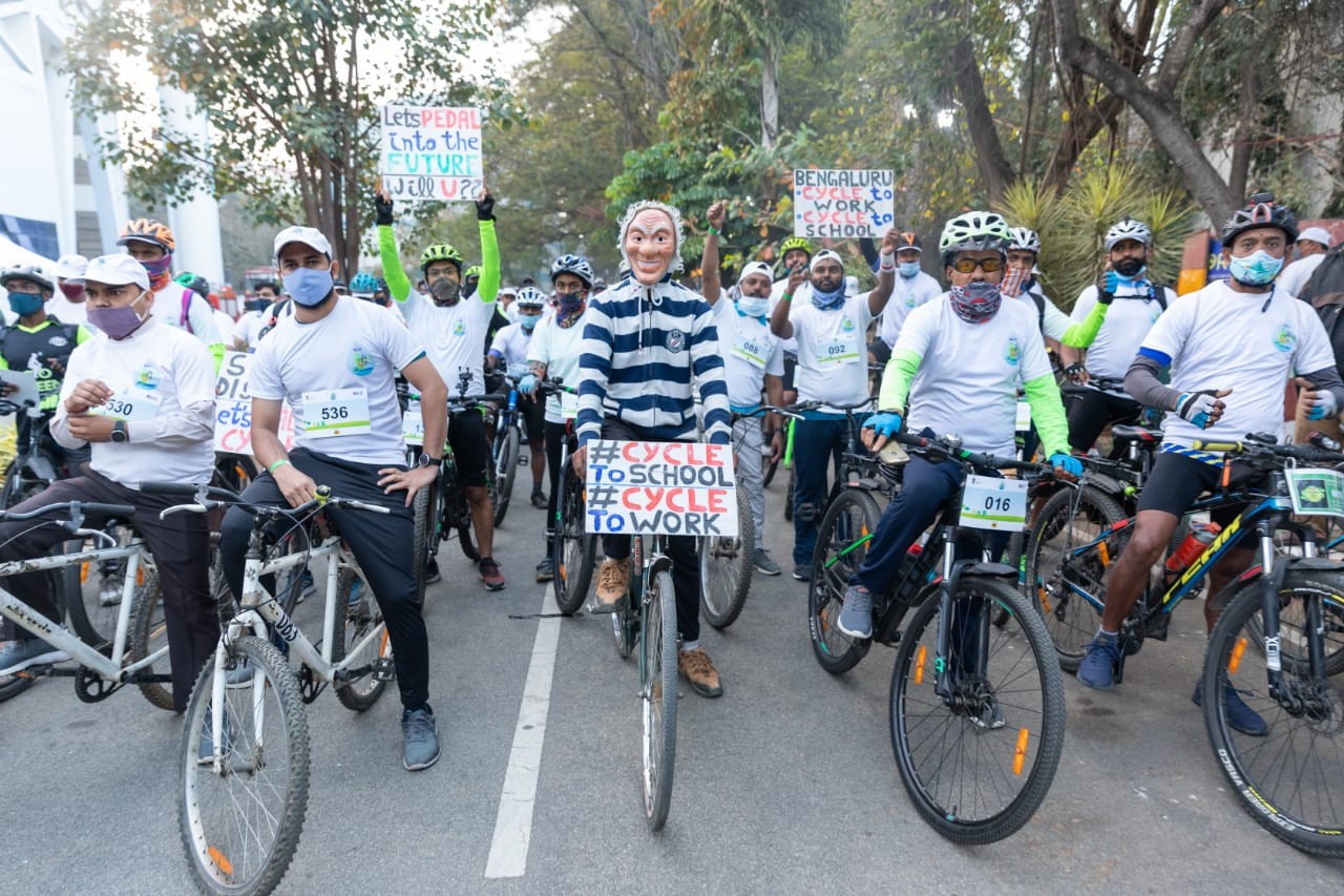 The event witnessed participation of more than 500 cyclists who pedalled their way round the Cubbon park for over 5 Km distance before finishing back at Sree Kanteerava Stadium. Before flagging off the cyclists, the chief guest administered the pledge in Kannada and English to all the participants for practising the measures for ensuring optimal utilization of the fossil fuels and take steps for its conservation for our future generations..