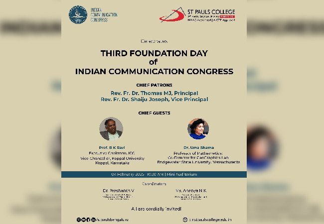 Bengaluru: The Third Foundation Day of the Indian Communication Congress (ICC) was celebrated at ST PAULS COLLEGE, on Tuesday, February 4, 2025.
