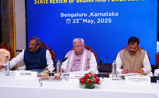 Bengaluru: Union Minister of Power Manohar Lal Khattar conducted a detailed review of Karnataka’s power sector during a high-level meeting held in Bengaluru on Saturday. The session was attended by Union Minister of State for Power and New & Renewable Energy Shripad Naik, Karnataka Energy Minister K. J. George, and senior officials from both the Centre and the State, including representatives from REC Ltd.