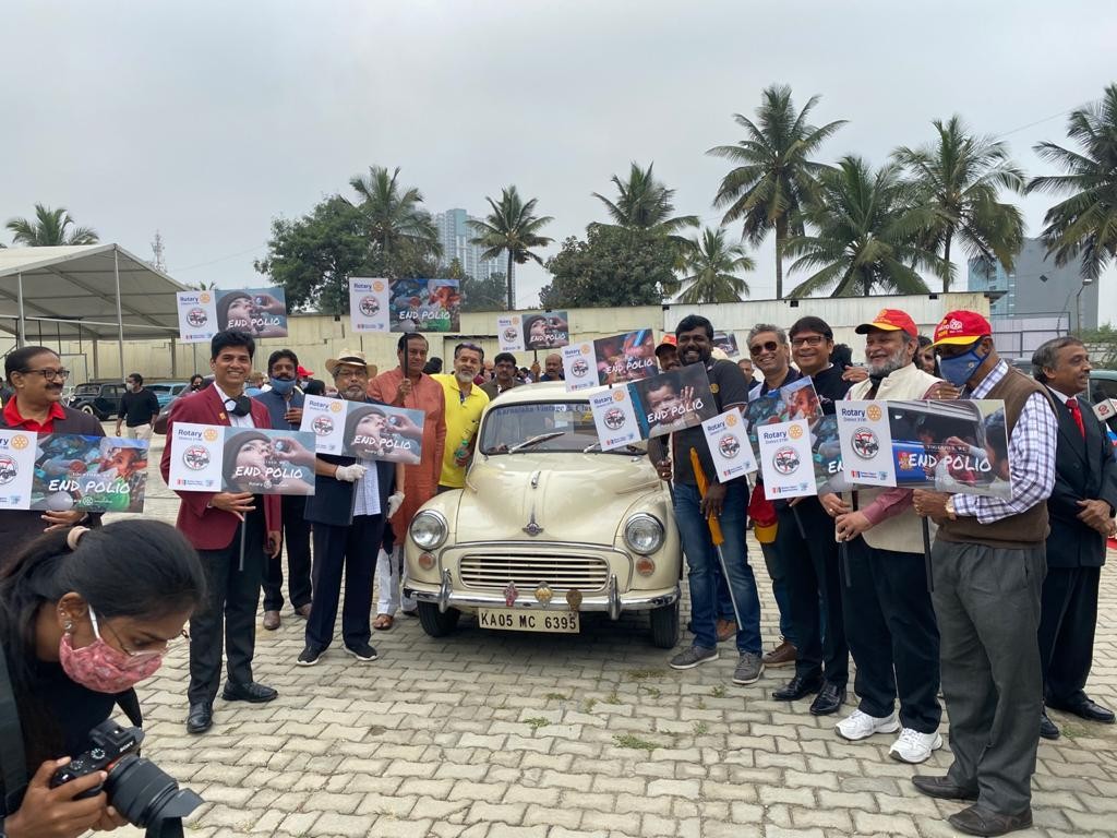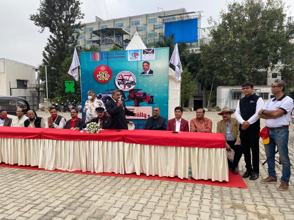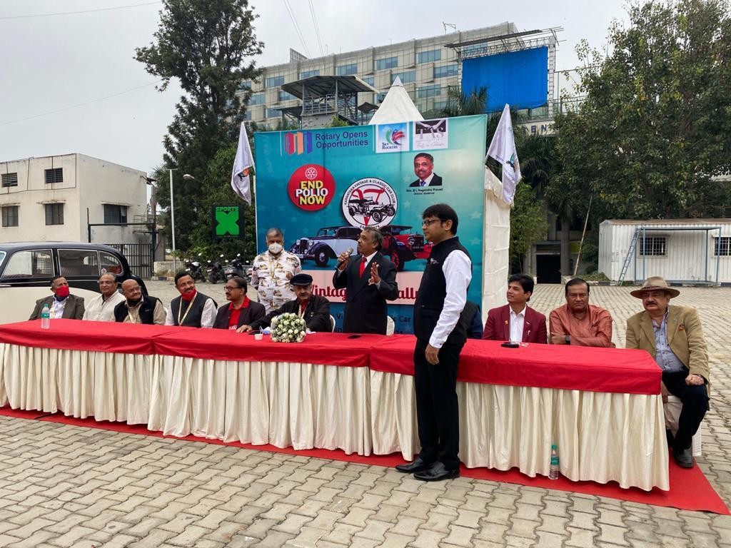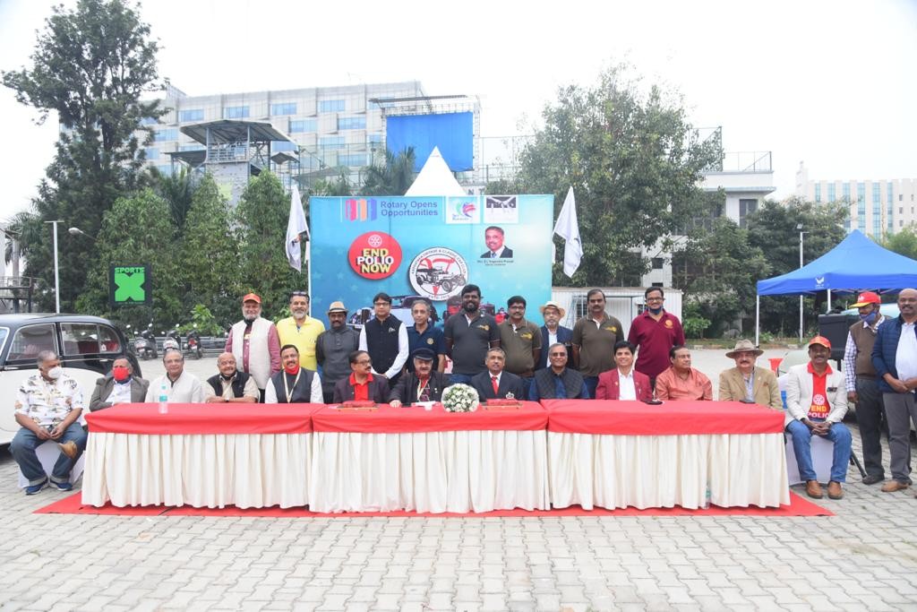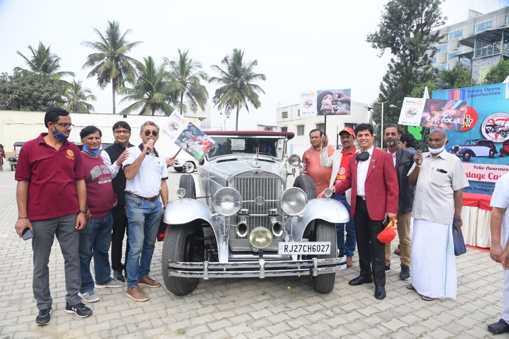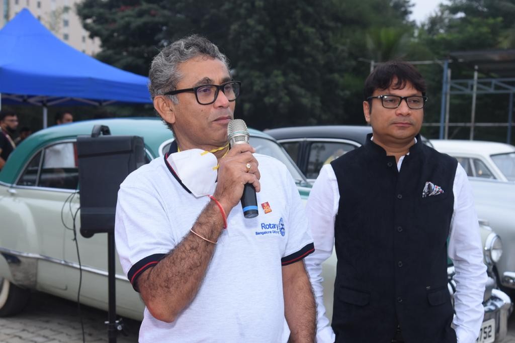 The rally was flagged off by DG Nagendra Prasad of Rotary District 3190, Sulaiman Jamal - President of the Karnataka Vintage and Classic Car (KVCCC) Club KVCC Secretary - Balachandra Yadalam, Senior Collector Vintage cars Ravi Kumar C, PDG Nagesh, Sreenivas Murthy, Arun Belur from Manpho Convention Centre Mohammed Tasleel President - Rotary Bengaluru.