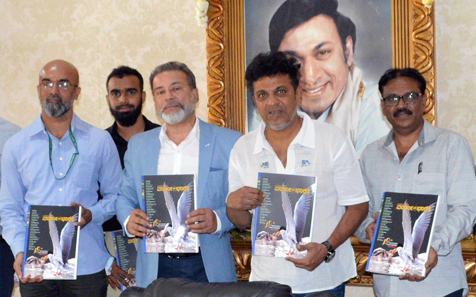 Well Known actor Dr Shivaraj Kumar released the 19th Annual Special Issue of Vartha Bharati Kannada Daily on Wednesday, 29th December 2021 at his residence in Bengaluru. Shivaraj Kumar lauded the role played by Vartha Bharati and wished the newspaper all the best. He appreciated the high quality of the special issue and congratulated the team.