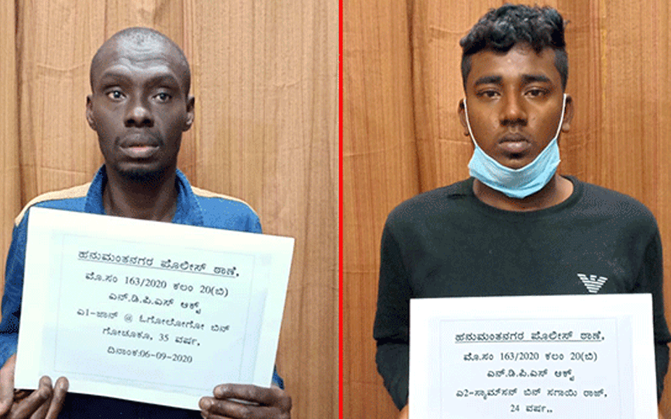 The Hanumantha Nagar police arrested two individuals, including a Nigerian national, on charges of selling drugs on Sunday, 6th of September.