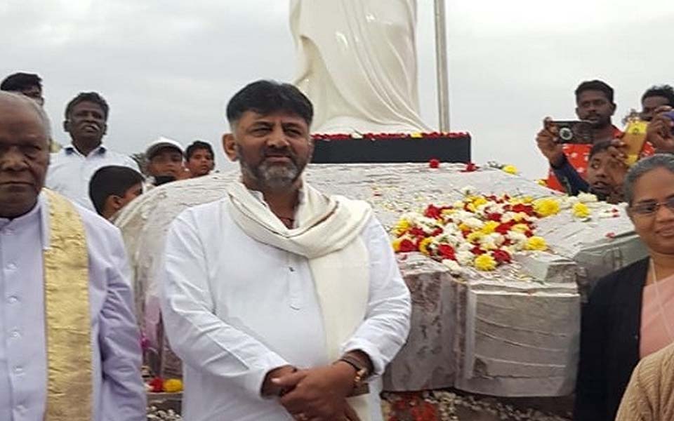 Bengaluru: Congress leader D K Shivakumar drew flak from the BJP on for sponsoring construction of a 114-foot statue of Jesus Christ in his constituency, with the saffron party terming it as 'appeasement politics' to remain in the good books of that party high command.