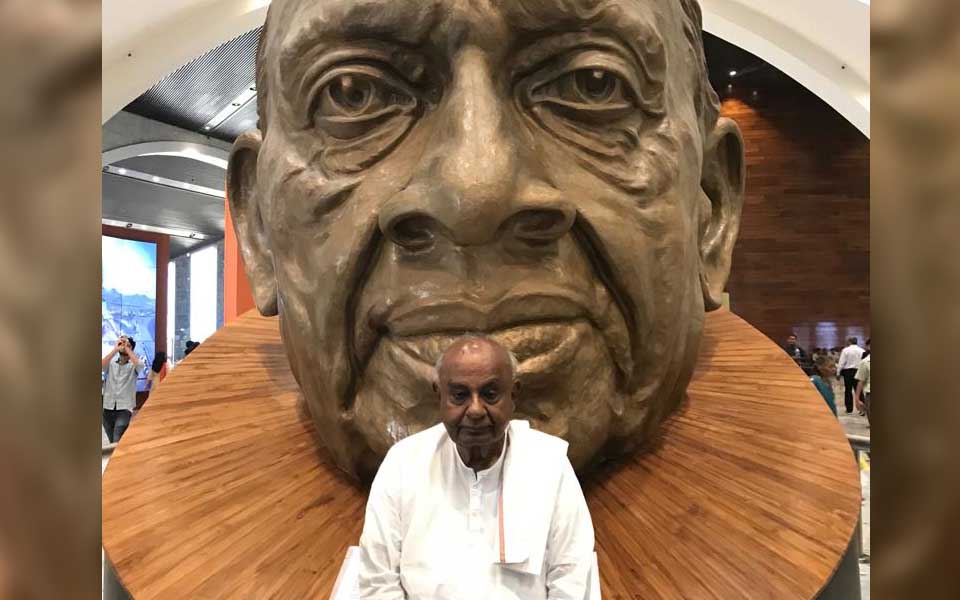 New Delhi: Former Prime Minister and JD(S) supremo HD Devegowda on Saturday visited ‘Statue of Unity’ at Sardar Sarovar Dam in Gujarat.