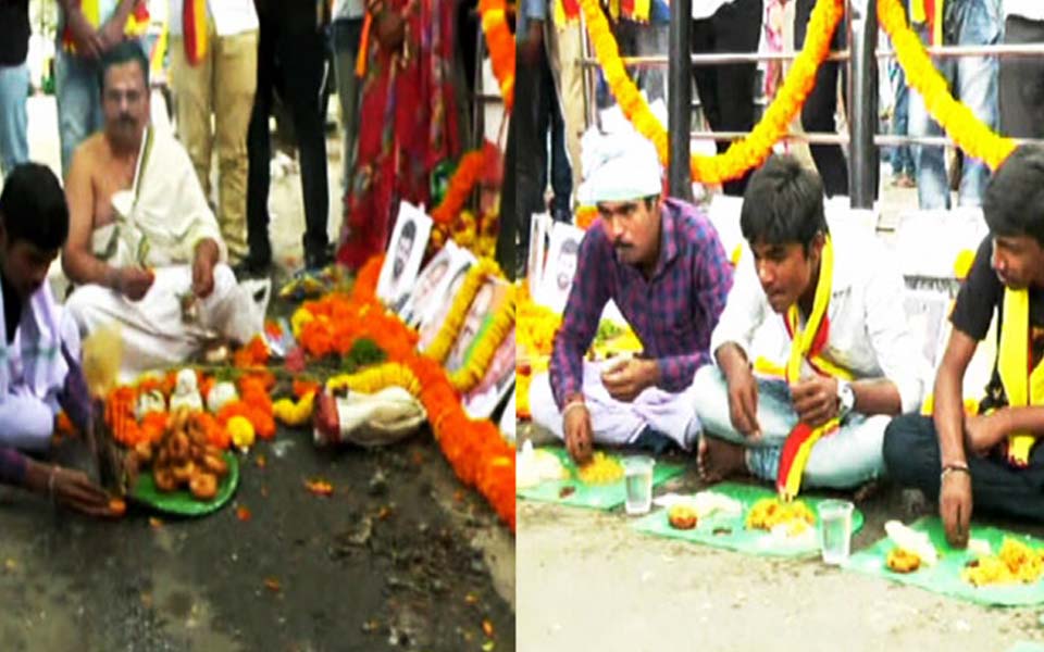 Bengaluru: Condemning the Central Government's move of not giving adequate compensation to rain victims of North Karnataka, pro-Kannada organisations held a symbolic funeral of BJP Mps.