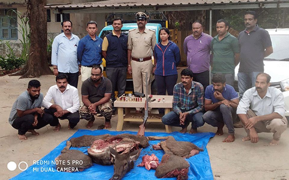 Madkeri: Six people were arrested for illegally hunting down a red deer at Kodagu-Kerala border’s reserved forest area on Saturday early morning here.