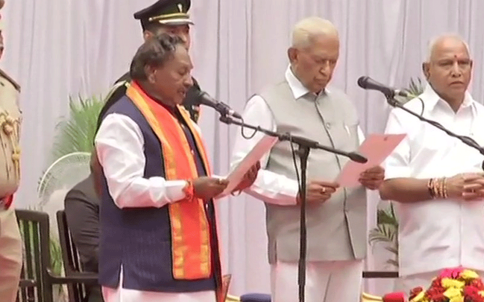 Bengaluru: Karnataka BJP MLA Madhu Swamy on Tuesday found himself under a rather embarrassing situation while taking oath as the minister in Yediyurappa cabinet. A slip of tongue during oath taking and he mistakenly took oath as the ‘Mukhya Mantri’ meaning the Chief Minister while all he had to say was only ‘Mantri’ meaning minister.