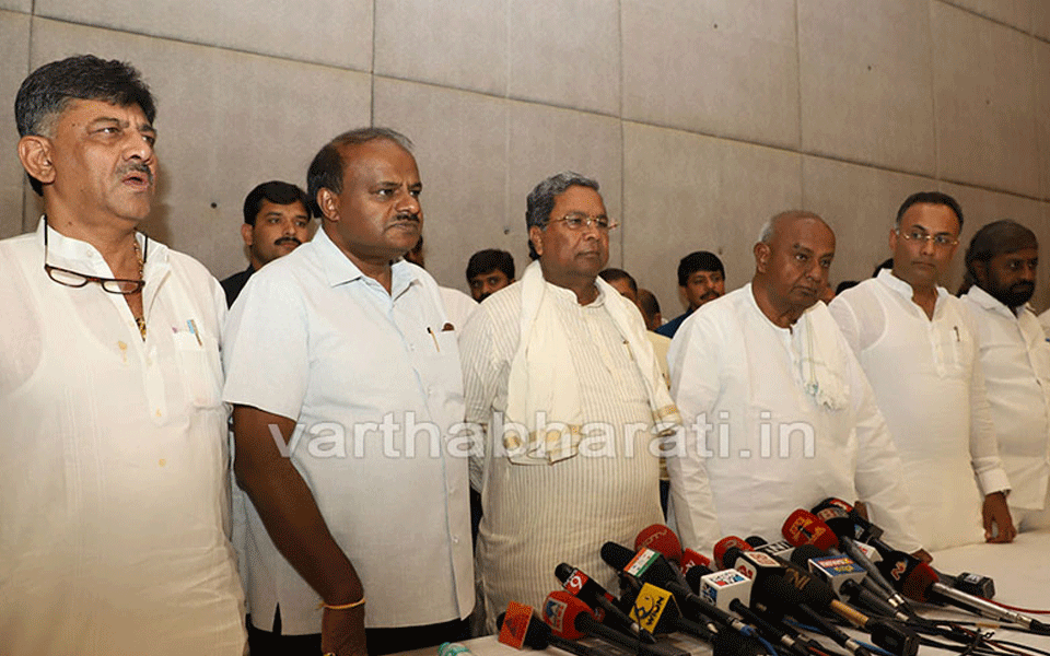 Bengaluru: The ruling Congress-JD(S) coalition in Karnataka Tuesday said they would jointly campaign for the Lok Sabha polls and vowed to reduce the BJP to a "single digit" in the state.