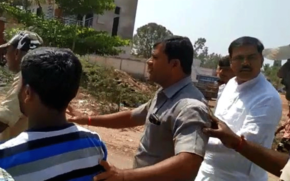 Vijayapura, Feb 20: BJP MLA AS Patil Nadahalli was caught into a controversy when he tried to assault a person who was allegedly appealing for a police station to be set up here in the locality on Wednesday.